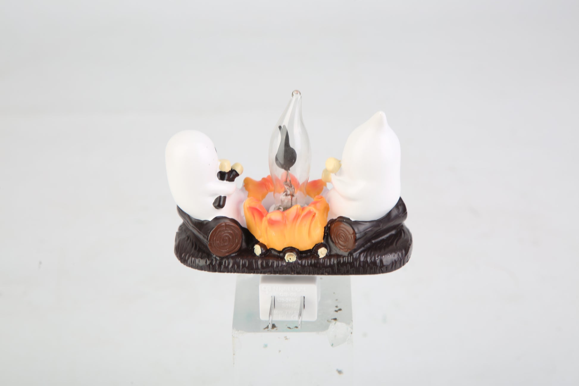 Create a playful Halloween atmosphere with these adorable ghost campfire night lights. Featuring two friendly ghosts gathered around a flickering flame, this plug-in decoration adds warmth, charm, and a touch of spooky fun to your home.