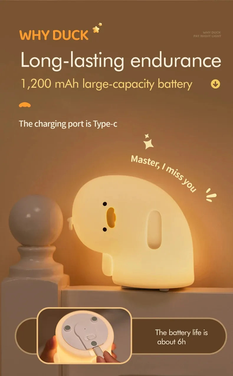 Cute Duck Night Light | Touch Control, USB Rechargeable & Timer